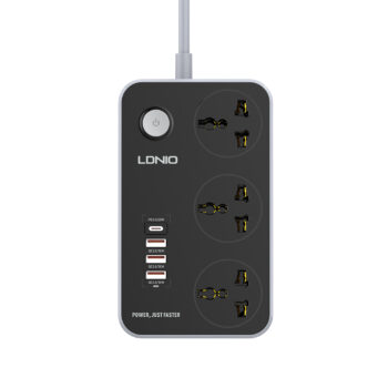 Сетевой фильтр LDNIO Universal SC3412 3 розетки 1*USB-C 12V-1.67A 3*USB 5V/3.4A Портов 2м