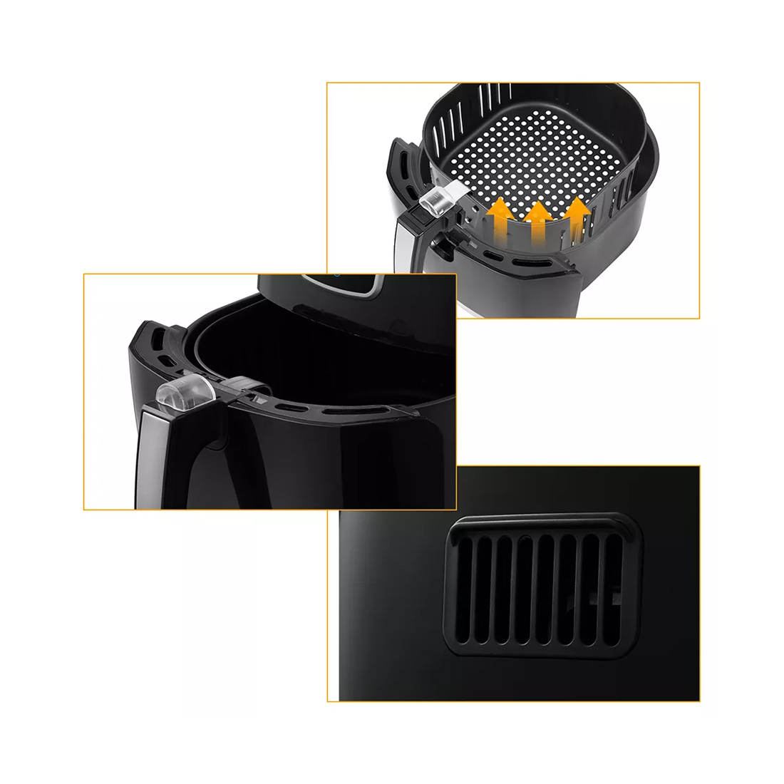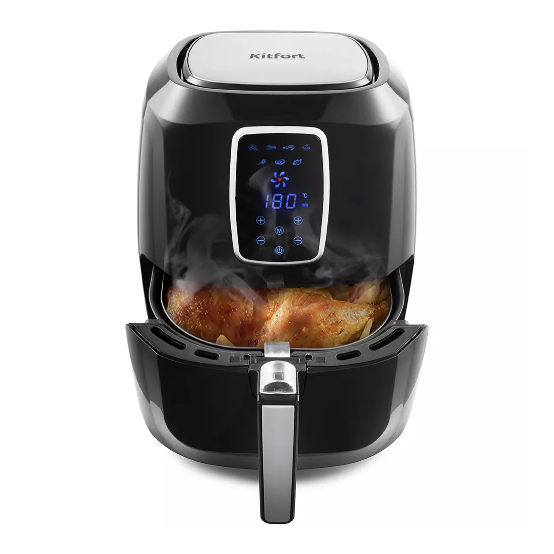 Аэрогриль, Kitfort, КТ-2208, Мощность 1800 Вт, Нагревательный элемент ТЭН, Максимальный объем колбы 5.2 л, Расширительное кольцо нет, Объем чаши 5.2 л, Материал корпуса пластик, Цвет Черный