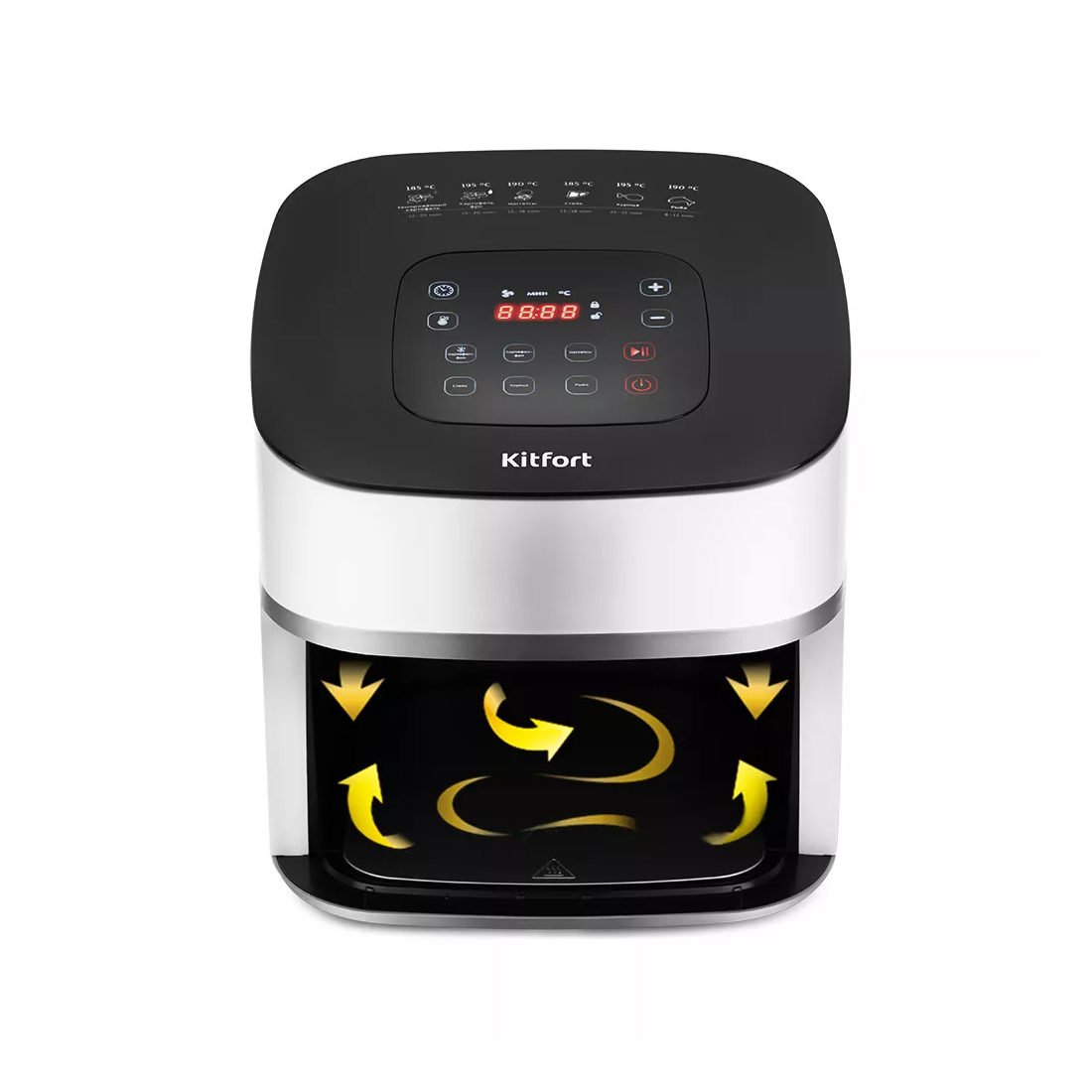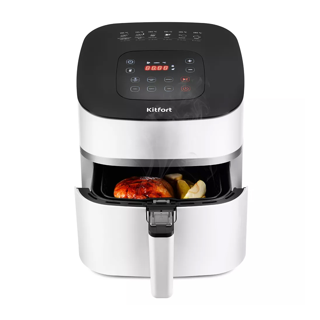 Аэрогриль, Kitfort, КТ-2217, Мощность 1500 Вт, Объем чаши 4.5 л, Сенсорное управление, Количество автоматических программ 6, Максимальная температура нагрева 200 °C, Цвет белый
