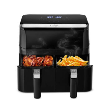 Аэрогриль, Kitfort, КТ-2254, Объем 8л, 2 чаши, 6 программ, Температура 80-200 °C, Сенсорное управление, Таймер, Мощность 2200 Вт, Длина шнура 0.9м, Уровень шума <55 дБ, Черный