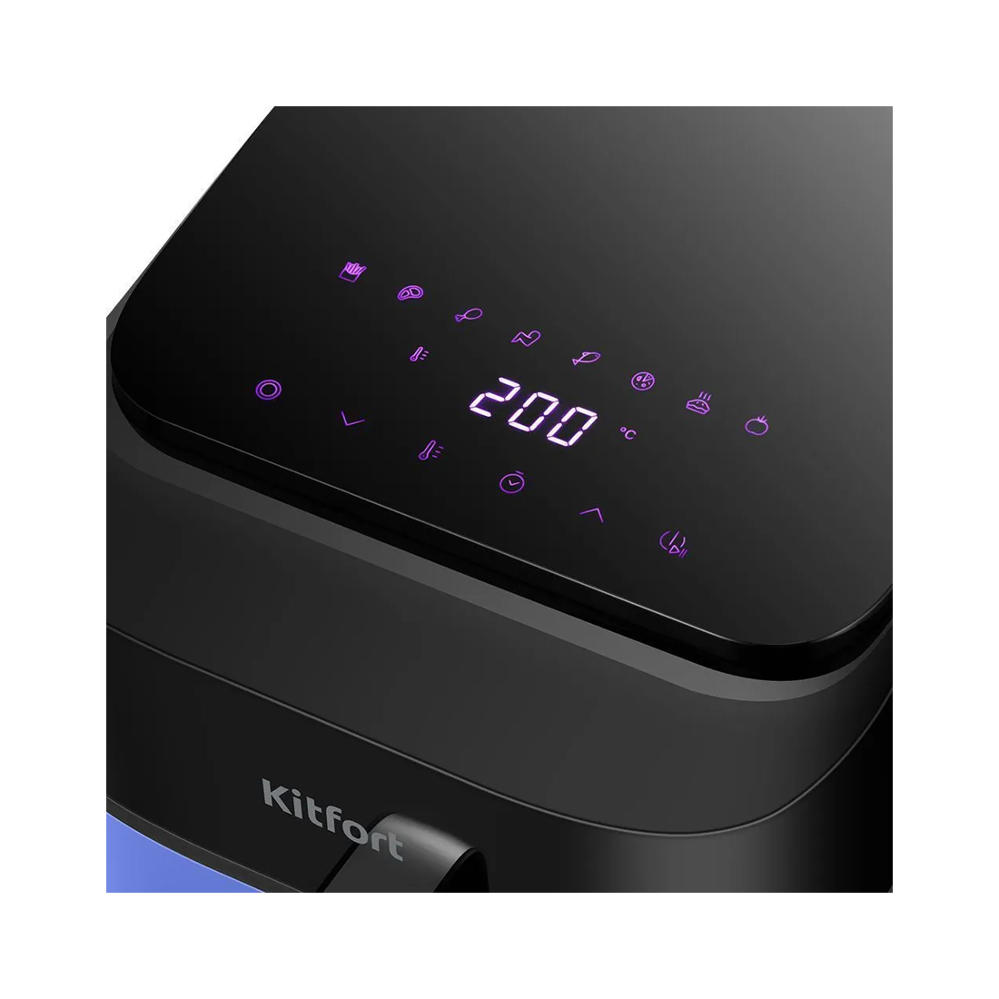 Аэрогриль, Kitfort, КТ-2263, Объем корзины 6.3л, 8 автоматических программ, Температура нагрева 80-200°C, Таймер, Сенсорное управление, Мощность 1800 Вт, Длина шнура 0.6 м, Черный/Синий