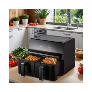 Аэрогриль, Kitfort, КТ-2265, 2 чаши, Объем 8.6л, 8 автоматических программ, Температура 80 — 200 °C, Сенсорное управление, Длина шнура 0.6м, Мощность 2700 Вт, Черный