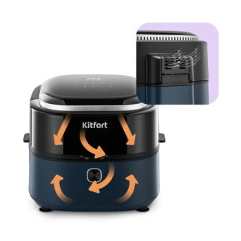 Аэрогриль, Kitfort, КТ-2294, Объем чаши 7л, 10 автоматических программ, Температура 80 — 200 °C, Сенсорное управление, Таймер, Мощность 1350 Вт, Длина шнура 0.8м, Синий