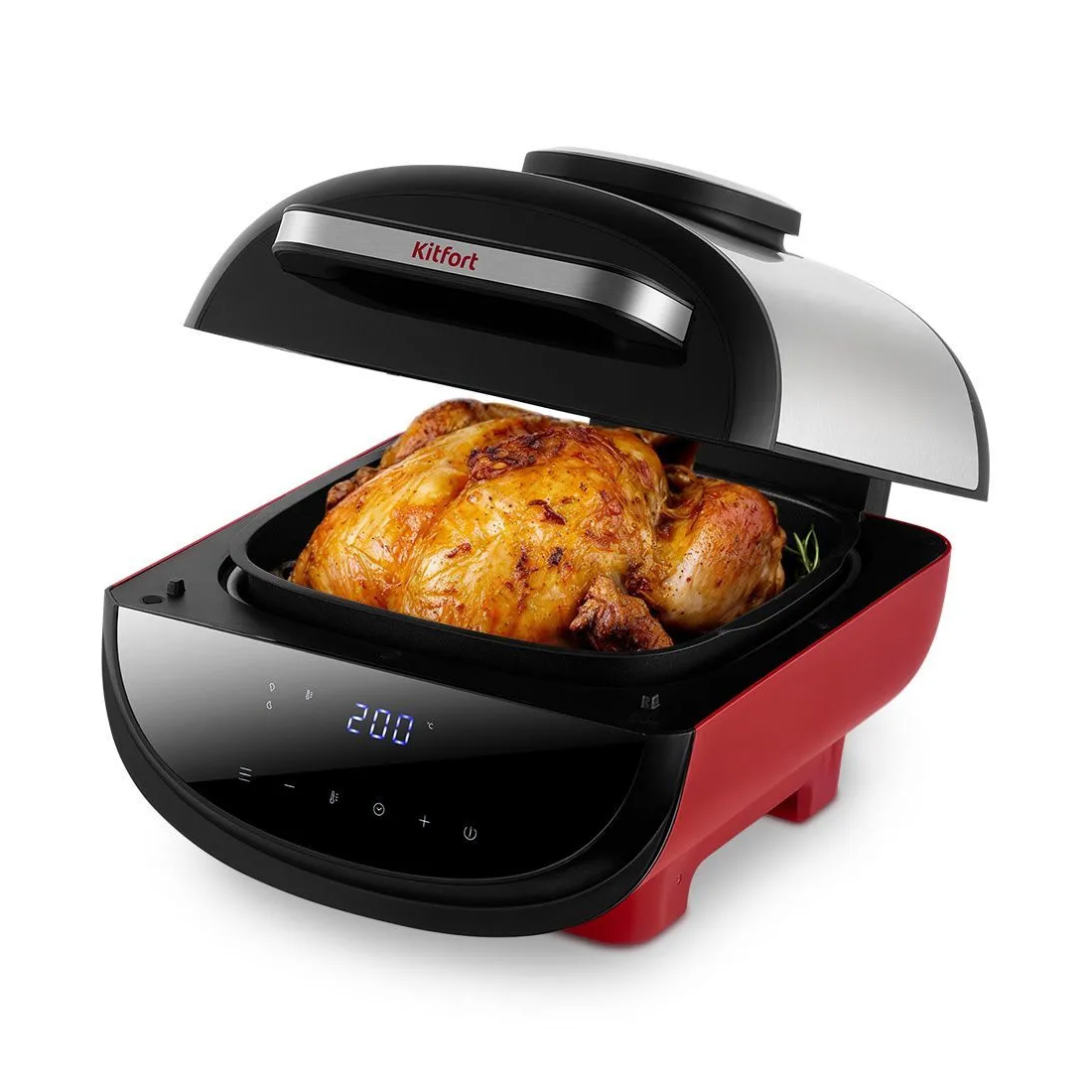 Аэрогриль, Kitfort, КТ-2295, 1 чаша, Объем 6.5 л, 8 программ, Температура нагрева 80-200°C, Сенсорное управление, Таймер, Мощность 1700 Вт, Длина шнура 0.6м, Черный/Красный