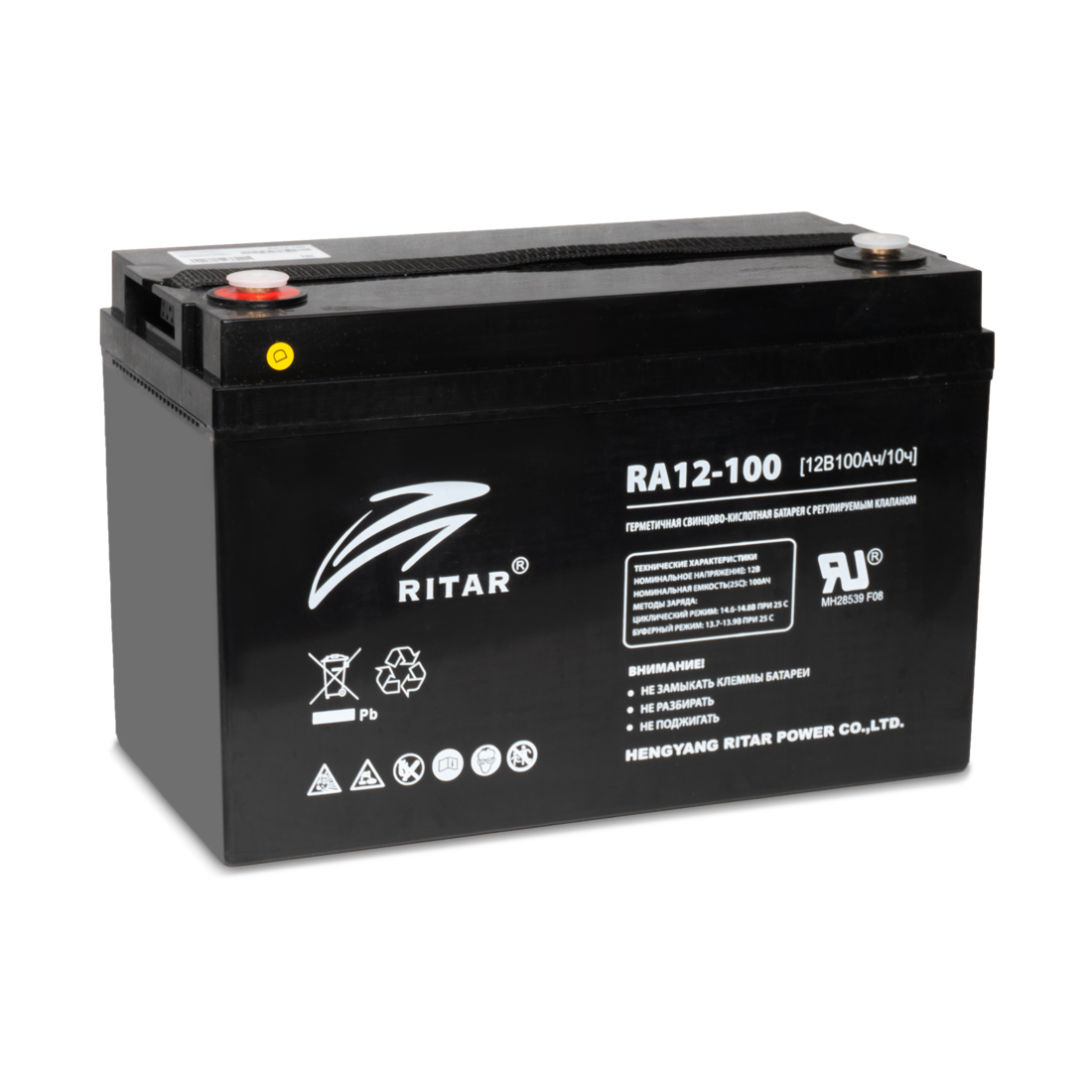 Батарея, Ritar, RA12-100, Свинцово-кислотная 12В 100 Ач, Вес нетто: 28,5 кг, Размер в мм.: 328*172*220