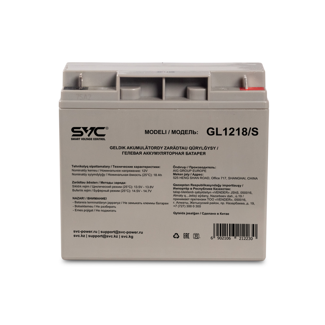 Батарея, SVC, GL1218/S, Гелевая 12В 18 Ач, Размер в мм.: 181*77*167