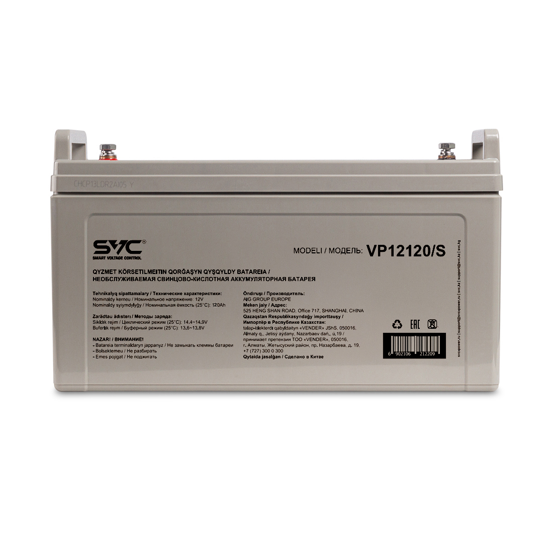 Батарея, SVC, VP12120/S, Свинцово-кислотная 12В 120 Ач, Вес нетто: 32,6 кг, Размер в мм.: 407*174*233