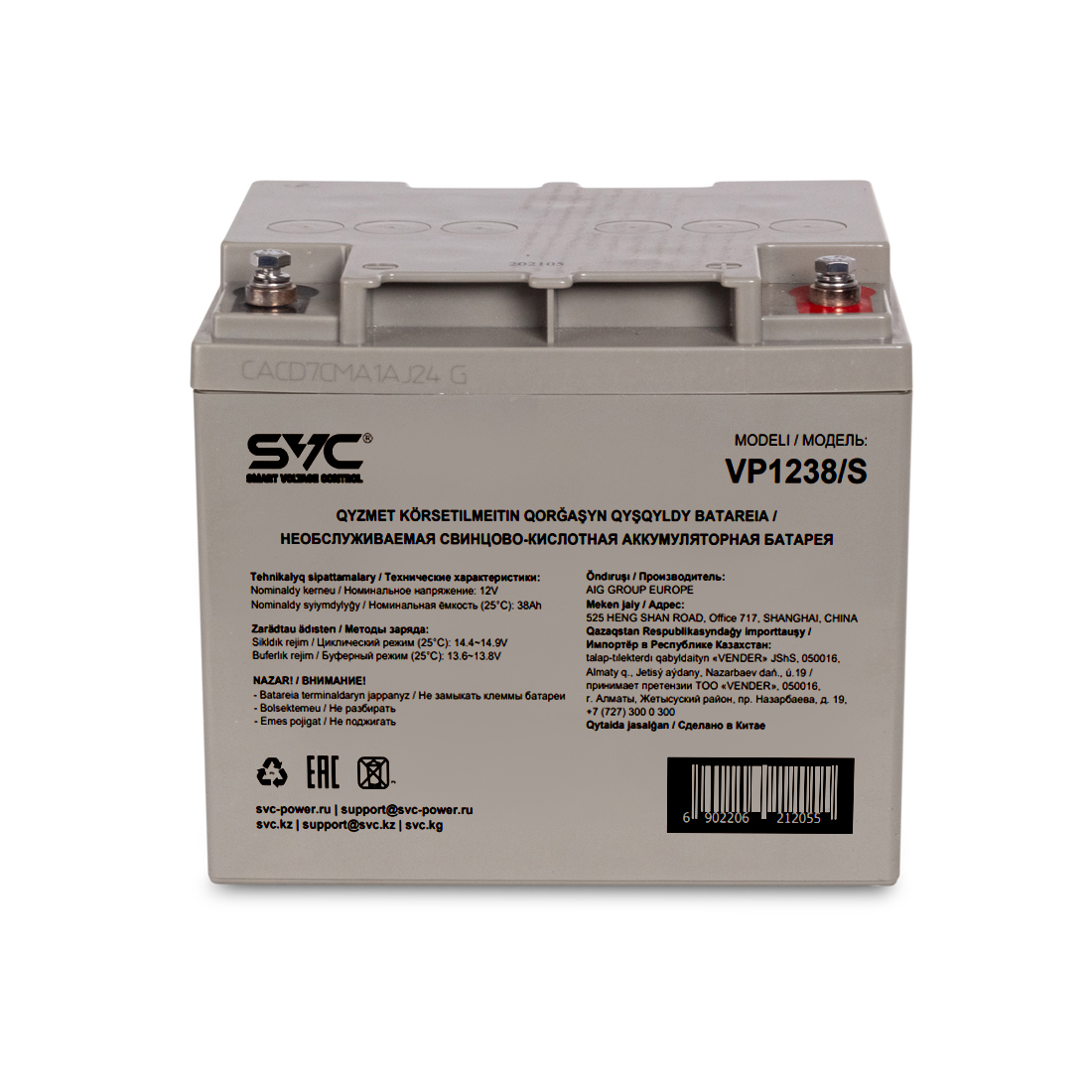Батарея, SVC, VP1238/S, Свинцово-кислотная 12В 38 Ач, Вес нетто: 11,8 кг, Размер в мм.: 195*165*170
