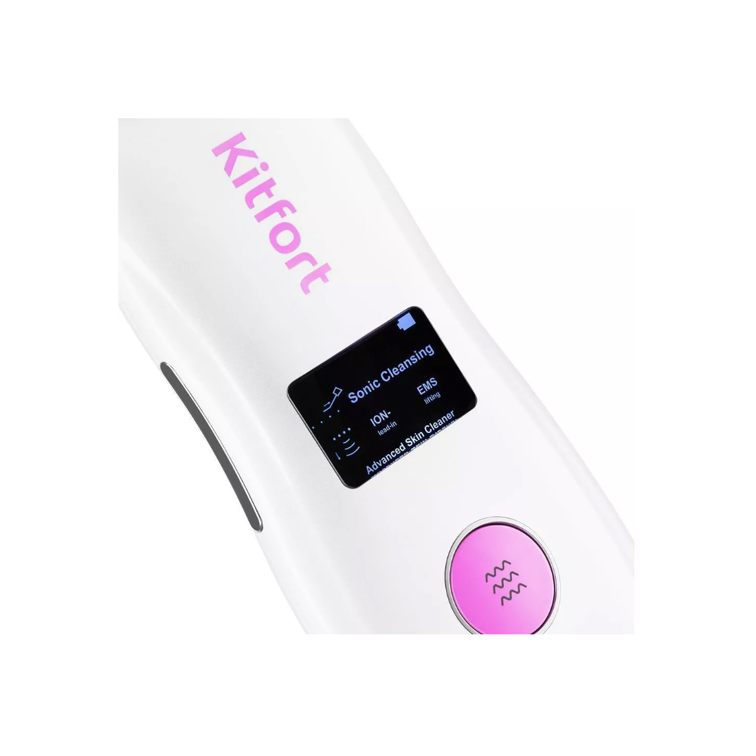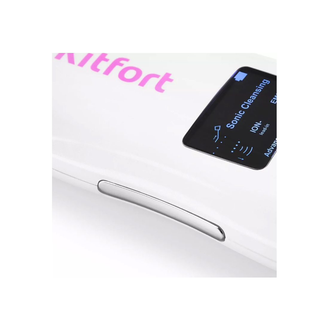 Аппарат для ультразвуковой чистки лица, Kitfort, КТ-3113, 5 режимов работы, Очищение, Ионофорез, Микромассаж, Время работы от аккумулятора до 40 мин, Белый, Розовый