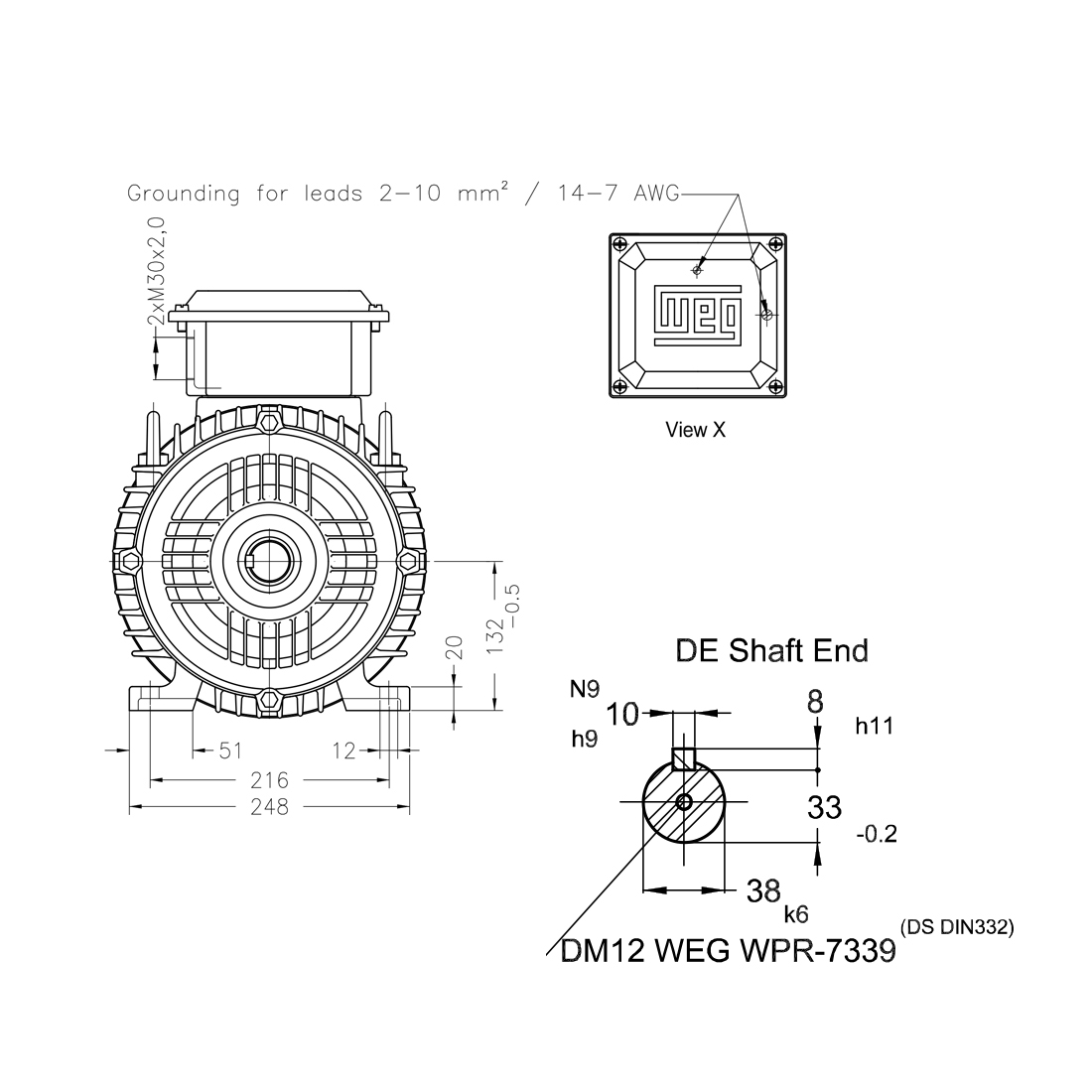Асинхронный электродвигатель, WEG, 12310540, AM W20 -132M, 7.5 kW, 4 Пол, B3T, 380-415/660//440-460 В, 50 Гц, IE1, IP55, std.