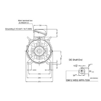 Асинхронный электродвигатель, WEG, 17725342, WGOST-132M, 11 kW, 2 Пол, B3T, 220/380 В, 50 Гц, IE1, IP55, Std.