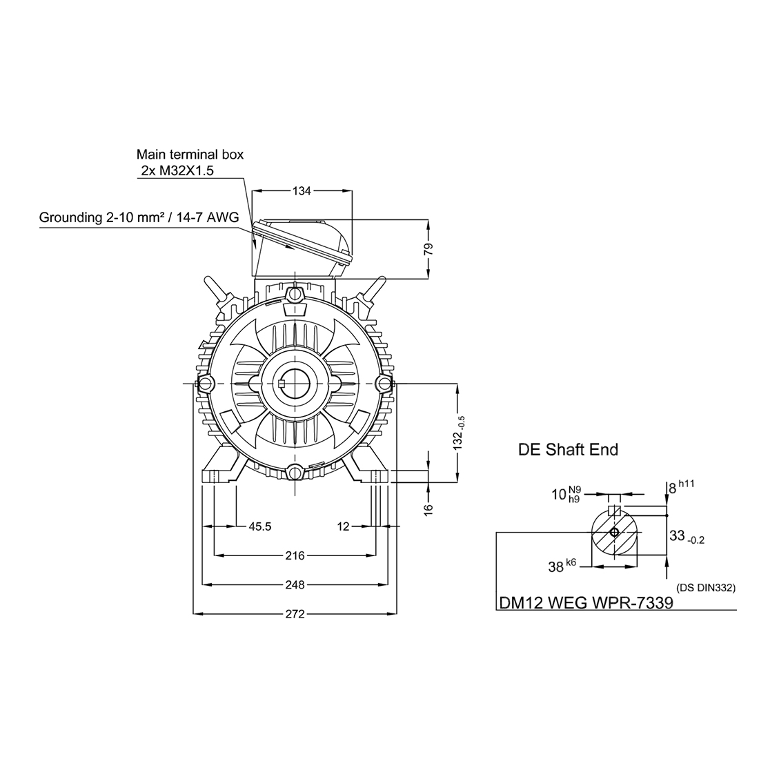 Асинхронный электродвигатель, WEG, 17725342, WGOST-132M, 11 kW, 2 Пол, B3T, 220/380 В, 50 Гц, IE1, IP55, Std.