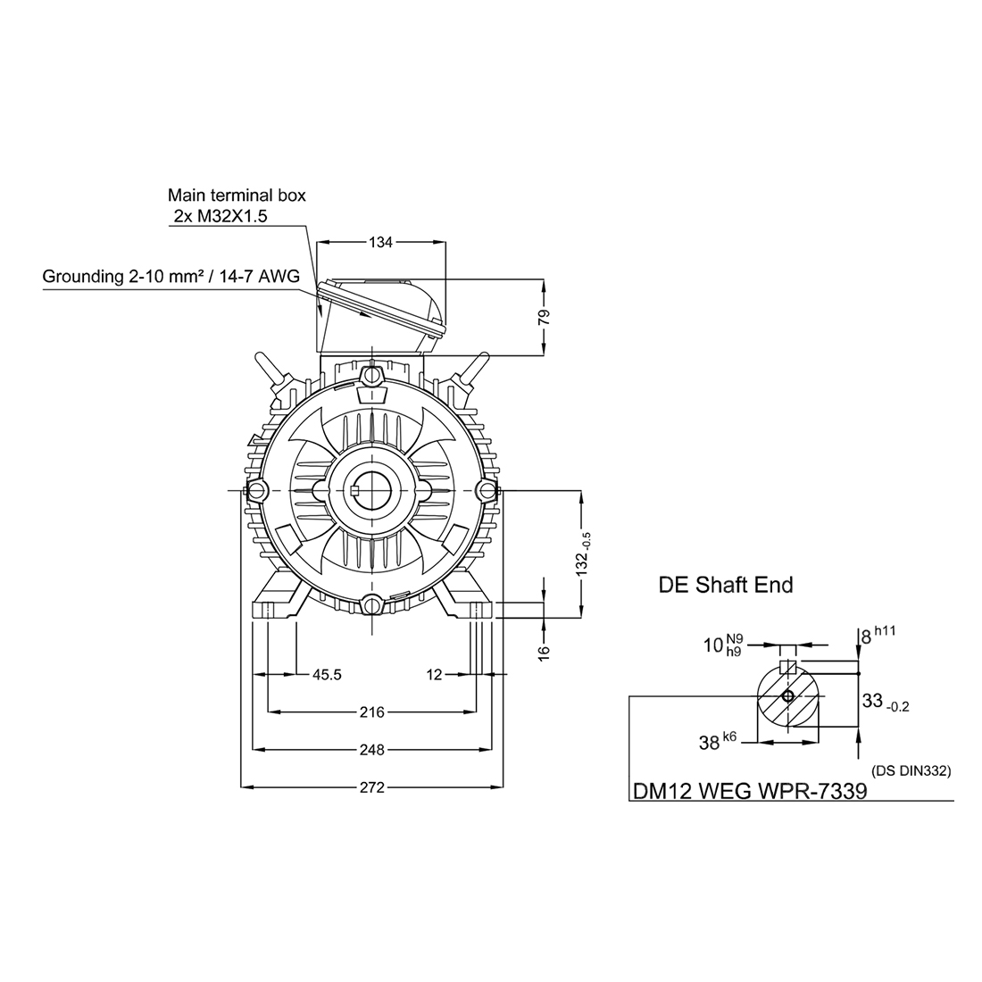 Асинхронный электродвигатель WEG 17725617 WGOST-132S 7.5 кВт 4 Пол B3T 220/380 В 50 Гц