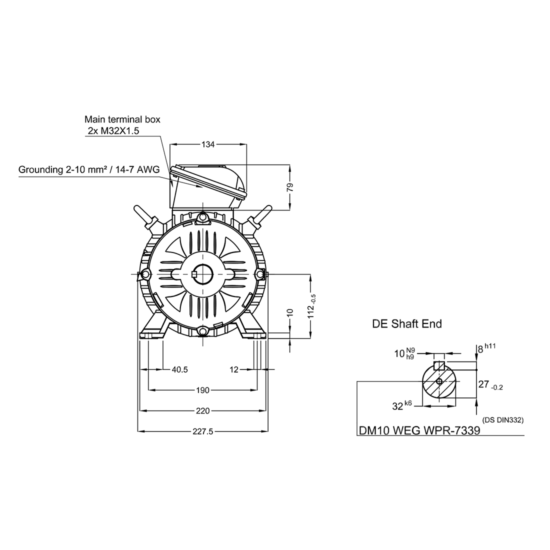 Асинхронный электродвигатель WEG 17886610 WGOST-112M 5.5 кВт 4P B3T 220/380 В 50 Гц