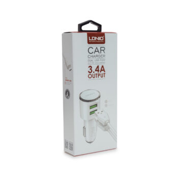 Автомобильное зарядное устройство, LDNIO, DL-C29, 2*USB(3.4A), Кабель Lightning (Iphone) 1м, Белый