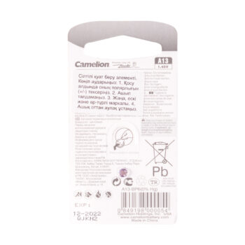 Батарейка, CAMELION, A13-BP6(0%Hg), Zinc Air, A13, 1.45V, 0% Ртути, 6 шт., Блистер