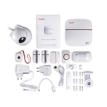 Беспроводной комплект системы безопасности, Patrol Hawk, B V-care (Эксперт), Wi-Fi, GSM, 1x панель сигнализации, 1x датчик движения, 1x датчик размыкания, 2x пульт управления, 1x IP камера, 1x кнопка вызова, IOS и Android