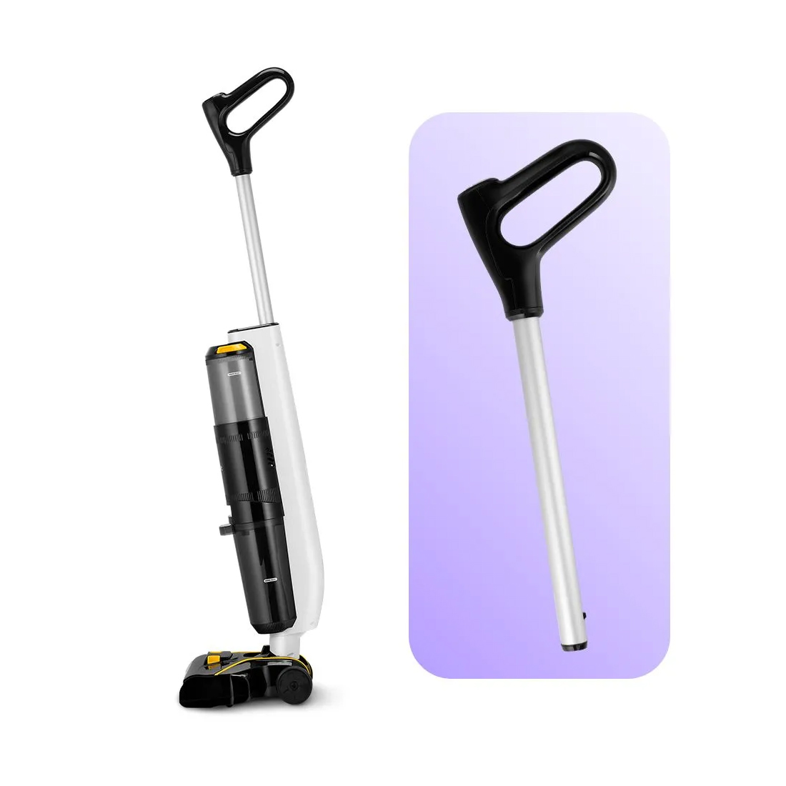 Беспроводной вертикальный моющий пылесос, Kitfort, КТ-5220, Объем 600 мл, Фильтр тонкой очистки Н10, Время работы 20-25мин, Уровень шума <80 дБ, Мощность 120 Вт, Длина шнура 1.6м, Черный/Желтый
