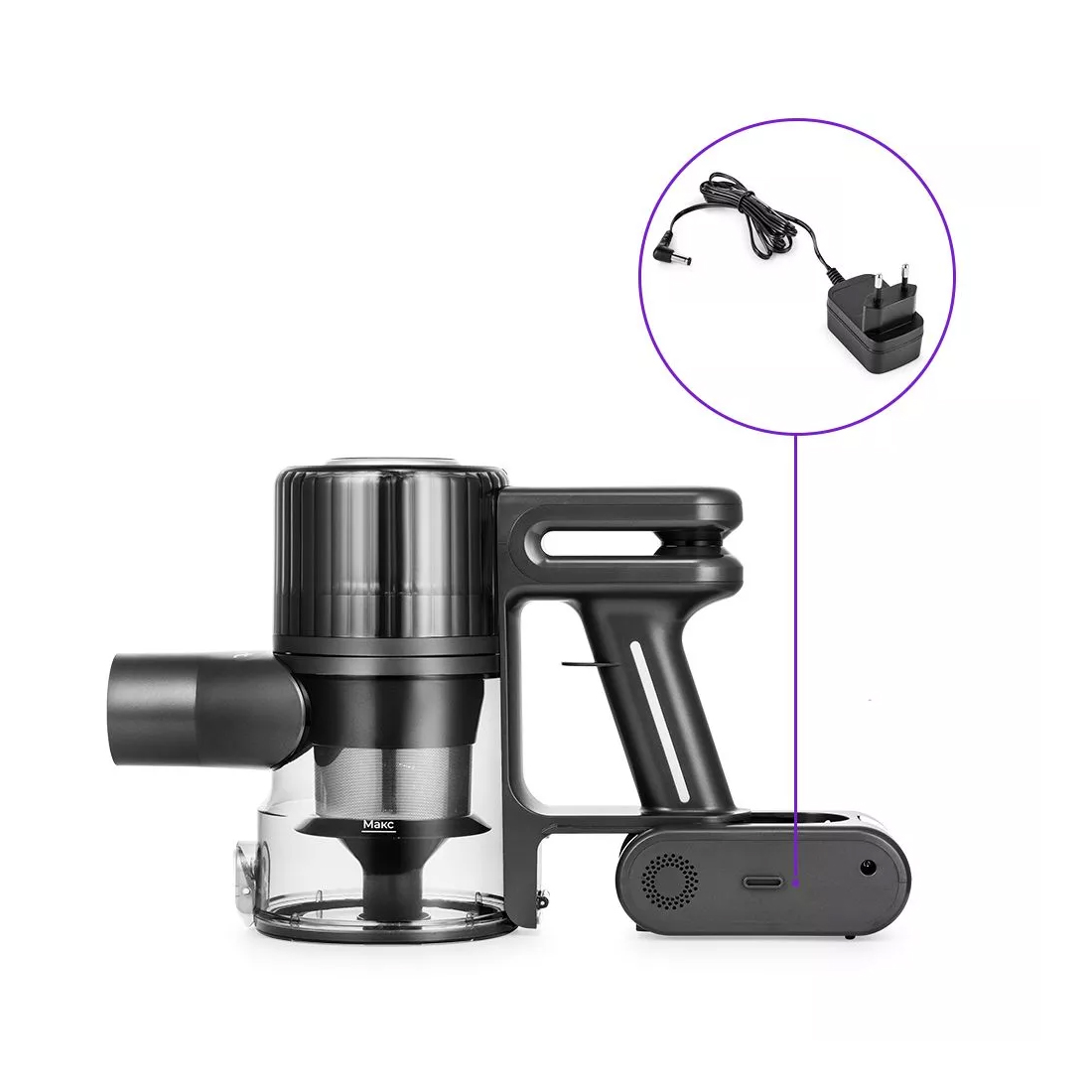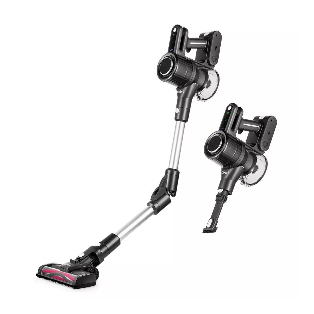 Беспроводной вертикальный пылесос, Kitfort, КТ-5168-3, Мощность 150 Вт, Время зарядки 4,5 ч, Время работы на первой скорости до 32 мин, Цвет Черно-белый