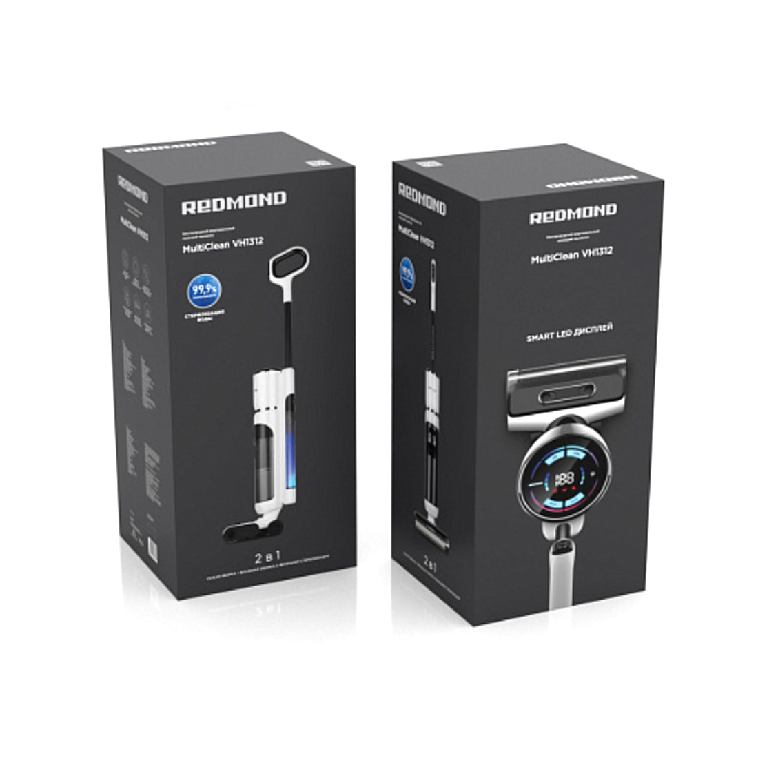 Беспроводной вертикальный пылесос, Redmond, VH1312, Мощность 200 Вт,Тип уборки сухая влажная, Объем пылесборника 0.7л, HEPA H13, Уровень шума до 70 дБ, Белый/Черный