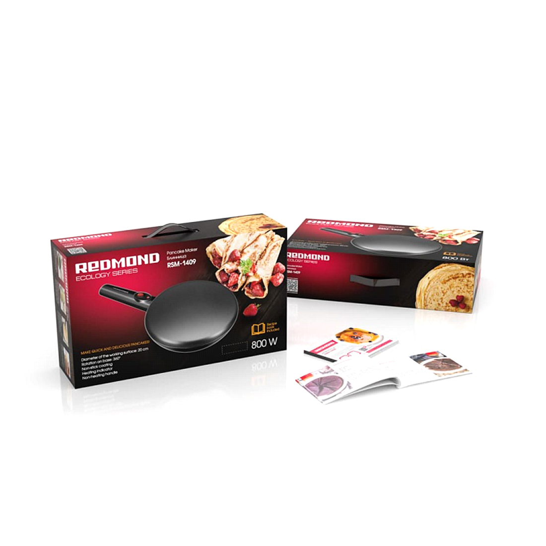 Блинница погружная, Redmond, RSM-1409, Мощность 800 Вт, Диаметр рабочей пластины 200 мм, Антипригарное покрытие, Индикация, Черный