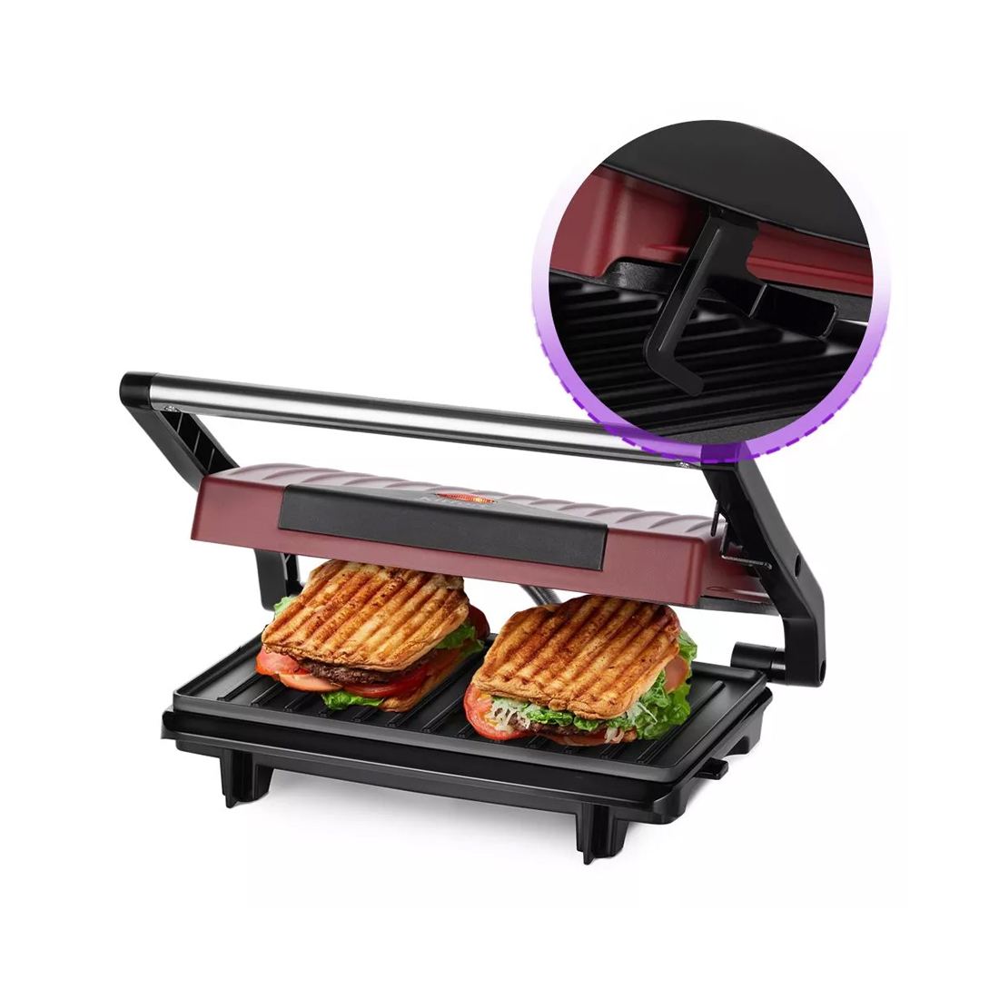 Бутербродница, Kitfort, КТ-3639, Антипригарное покрытие, Мощность 750 Вт, Длина шнура 0.6м, Бордовый
