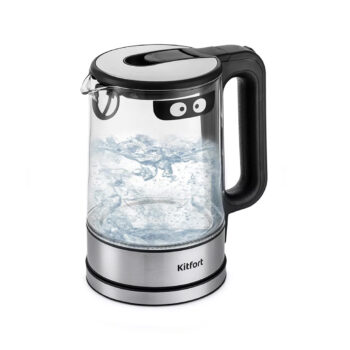 Чайник электрический, Kitfort, КТ-6128, Мощность 2200W, Стекло, Нержавеющая сталь, Режим нагрева 100 °С, Объем 1.7л, Стальной