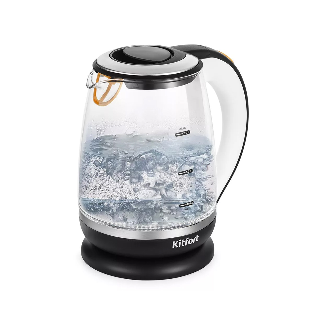 Чайник электрический, Kitfort, КТ-6199, Объем 2 л Мощность 2200 Вт, Количество стенок 1, Материал корпуса стеклопластик, Материал колбы стекло, Цвет Черный