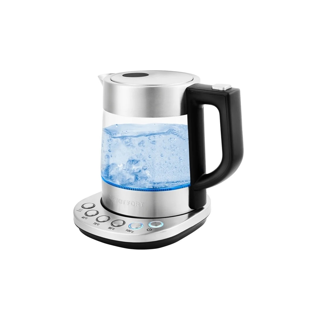 Чайник электрический, Kitfort, KT-648, Стекло, Объем 1 л, 4 температурных режима, Температура нагрева 40-100 °C, Длина шнура 0.7м, Мощность 2200 Вт, Металл
