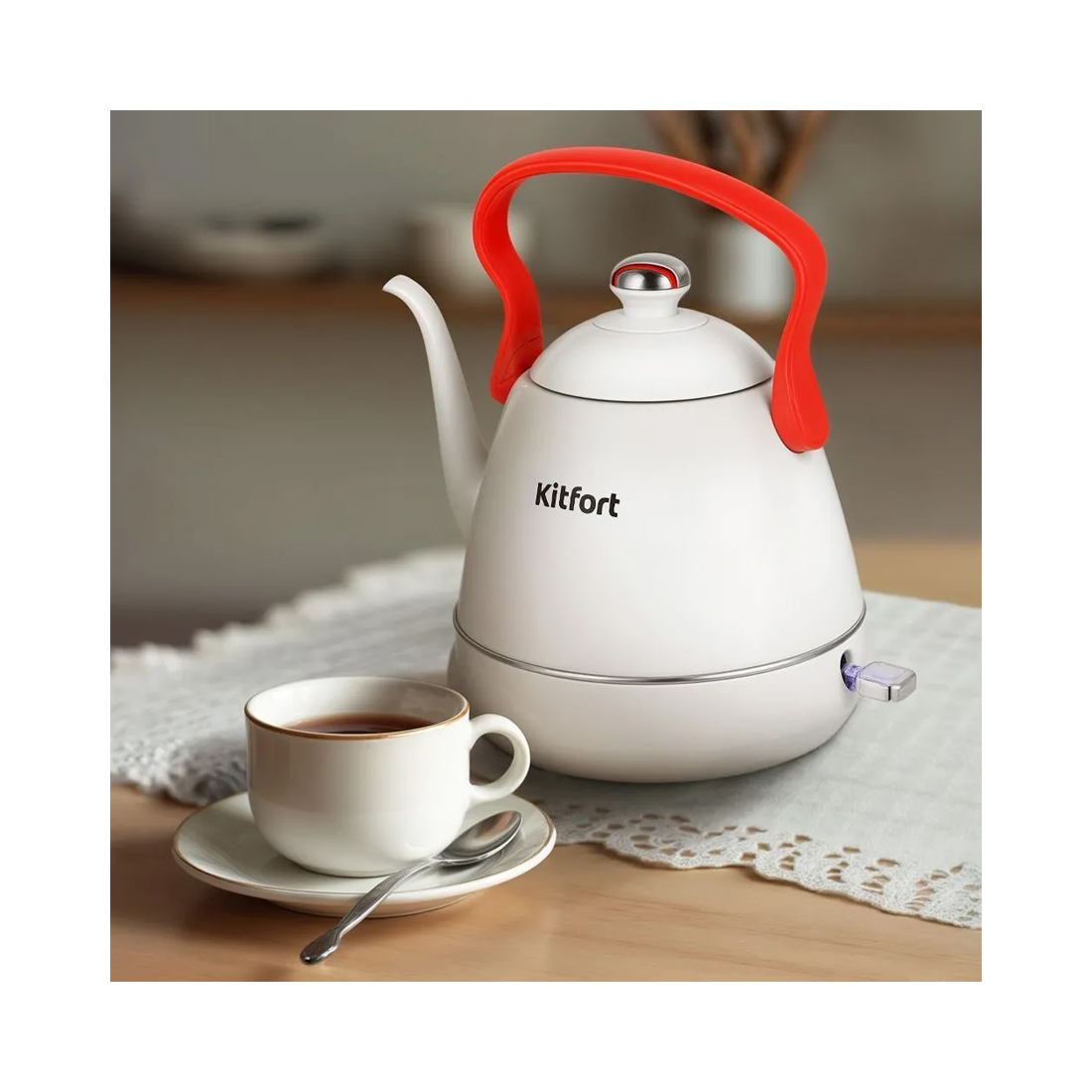 Чайник электрический, Kitfort, КТ-6793, Объем 1л, 1 стенка, Нержавеющая сталь, Съемная крышка, Кнопочное управление, Мощность 1260-1500 Вт, Длина шнура 0.7м, Белый