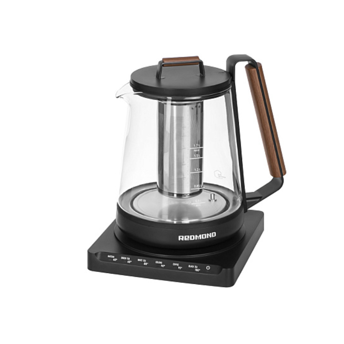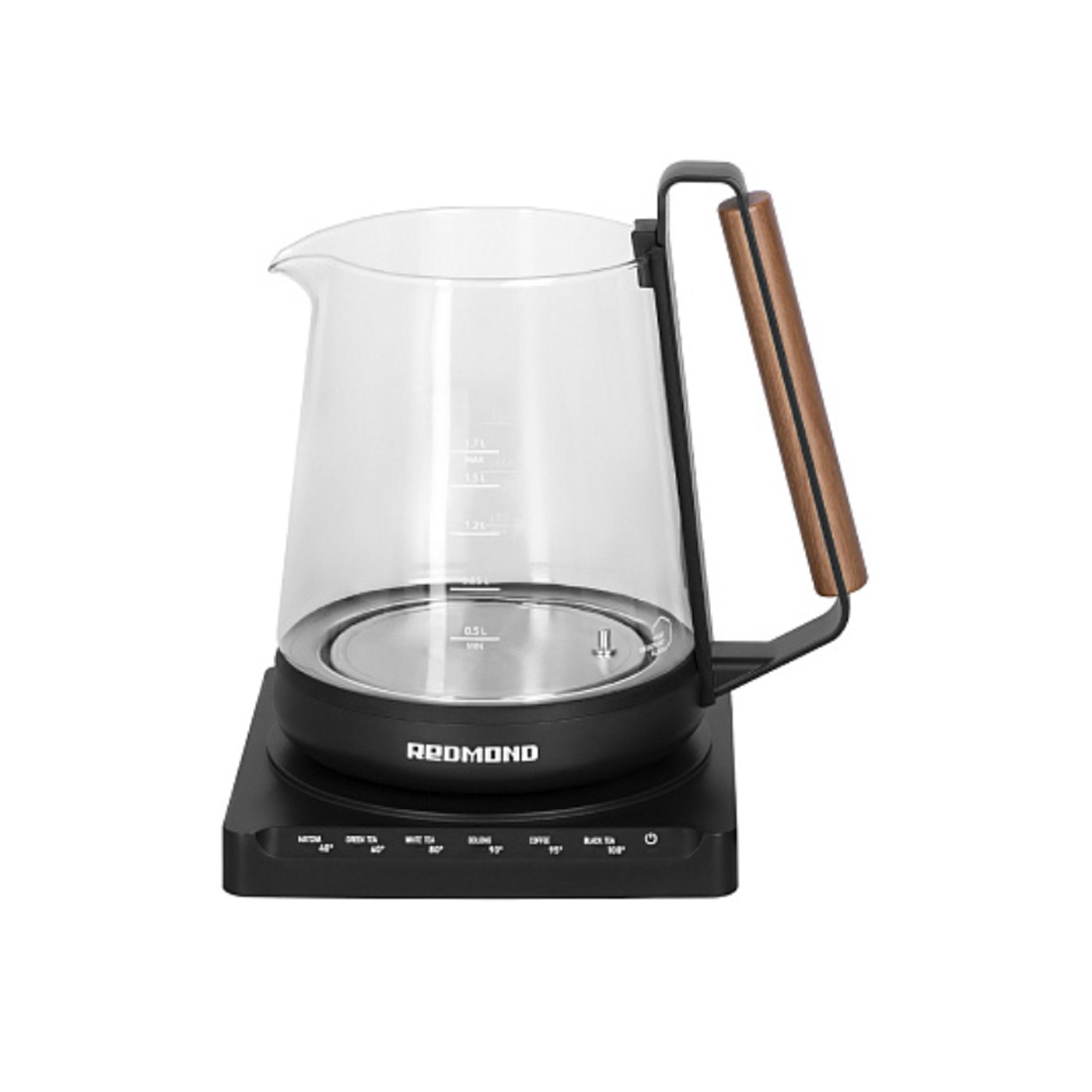 Чайник электрический, Redmond, RK-G1308D, Объем 1.7л, Стекло, 6 температурных режимов, Температура нагрева воды 95 °C, Мощность 1500 Вт, Черный