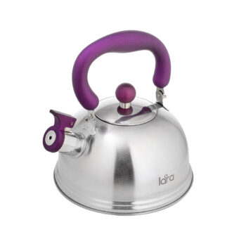 Чайник, LARA, LR00-61, Матовый, Объем 2.1л, Нержавеющая сталь, Индукционное капсулированное дно, Нейлоновая ручка Soft Touch, Складная ручка, Стальной/Фиолетовый