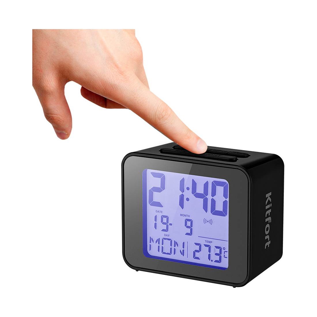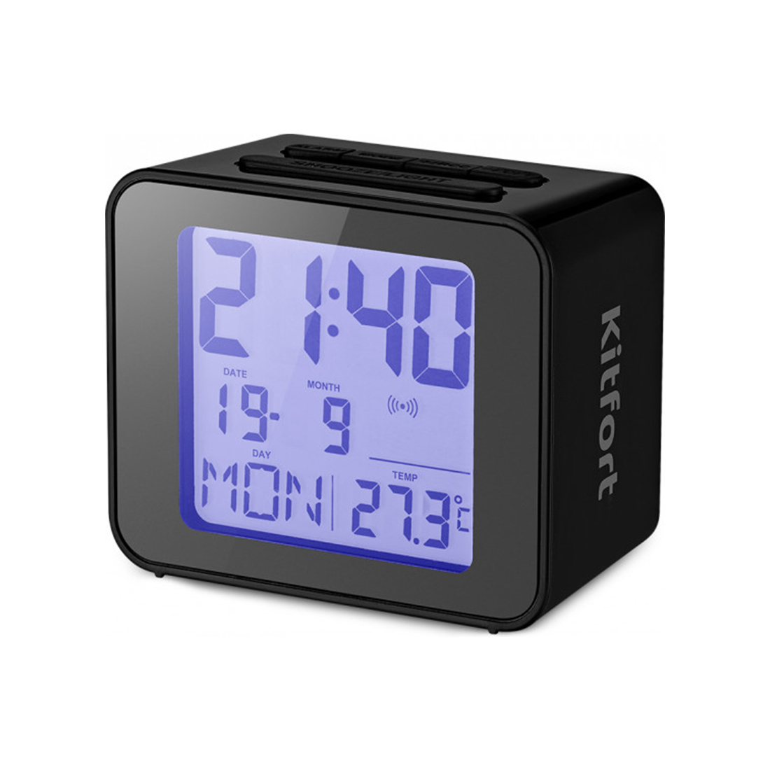 Часы с термометром, Kitfort, КТ-3303-1,Измерение температуры в помещении, Встроенный датчик, Будильник, Календарь, Часы, Питание от батареек, Черный