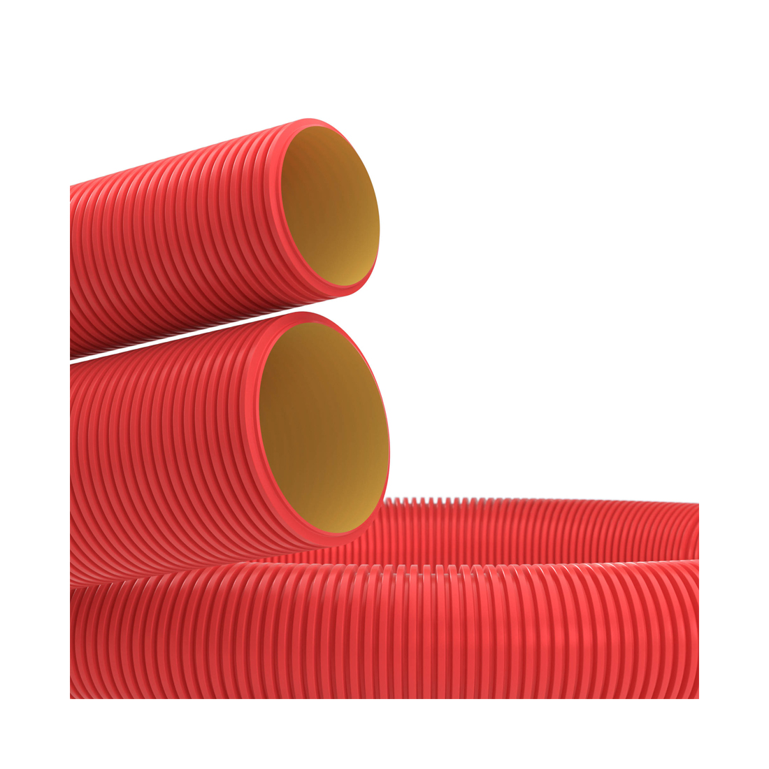 Двустенные гибкие электротехнические трубы могут использоваться как для прокладки кабеля, так и для организации ливневой организации. В первом случае удобнее использовать трубы с протяжкой — она позволяет легко проложить кабель во внутреннем пространстве трубы. Труба имеет высокую кольцевую жесткость. Диаметр 63 мм, поставляется бухтами по 50 метров.