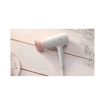 Фен, Philips, Серии 3000 BHD300/00, Мощность 1600 Вт, Тип мотора AC, Количество скоростей воздушного потока 2, Скорость воздушного потока 36 км/ч, Количество температурных режимов 3, Подача холодного воздуха, Температурный контроль, Цвет белый/розовый