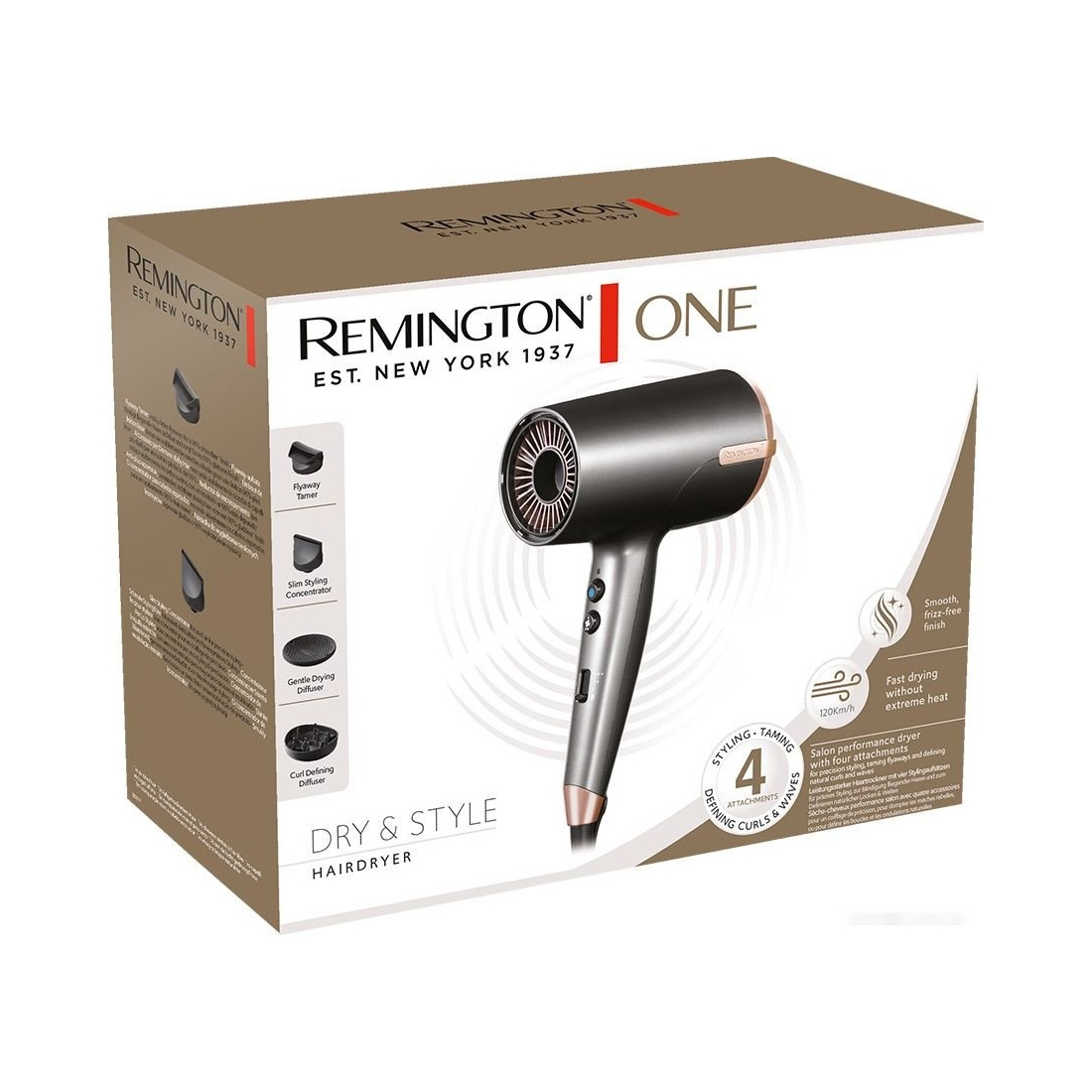 Фен, Remington, D6077, Мотор DC, Тип управления механическое, Материал корпуса пластик, Мощность 2000 Вт, Количество скоростей 8, Количество температурных режимов 8, Количество насадок 4, Цвет серый