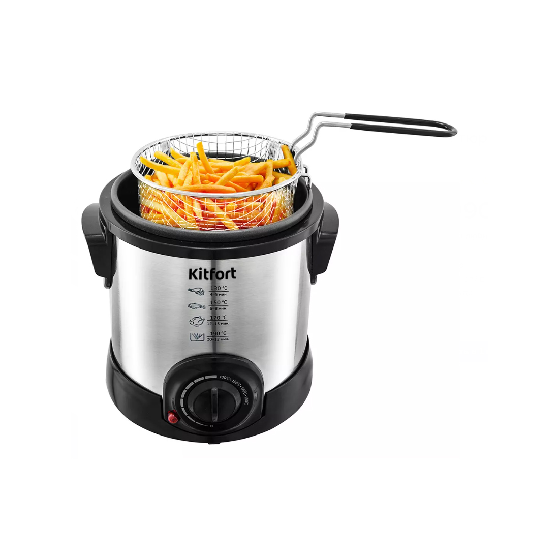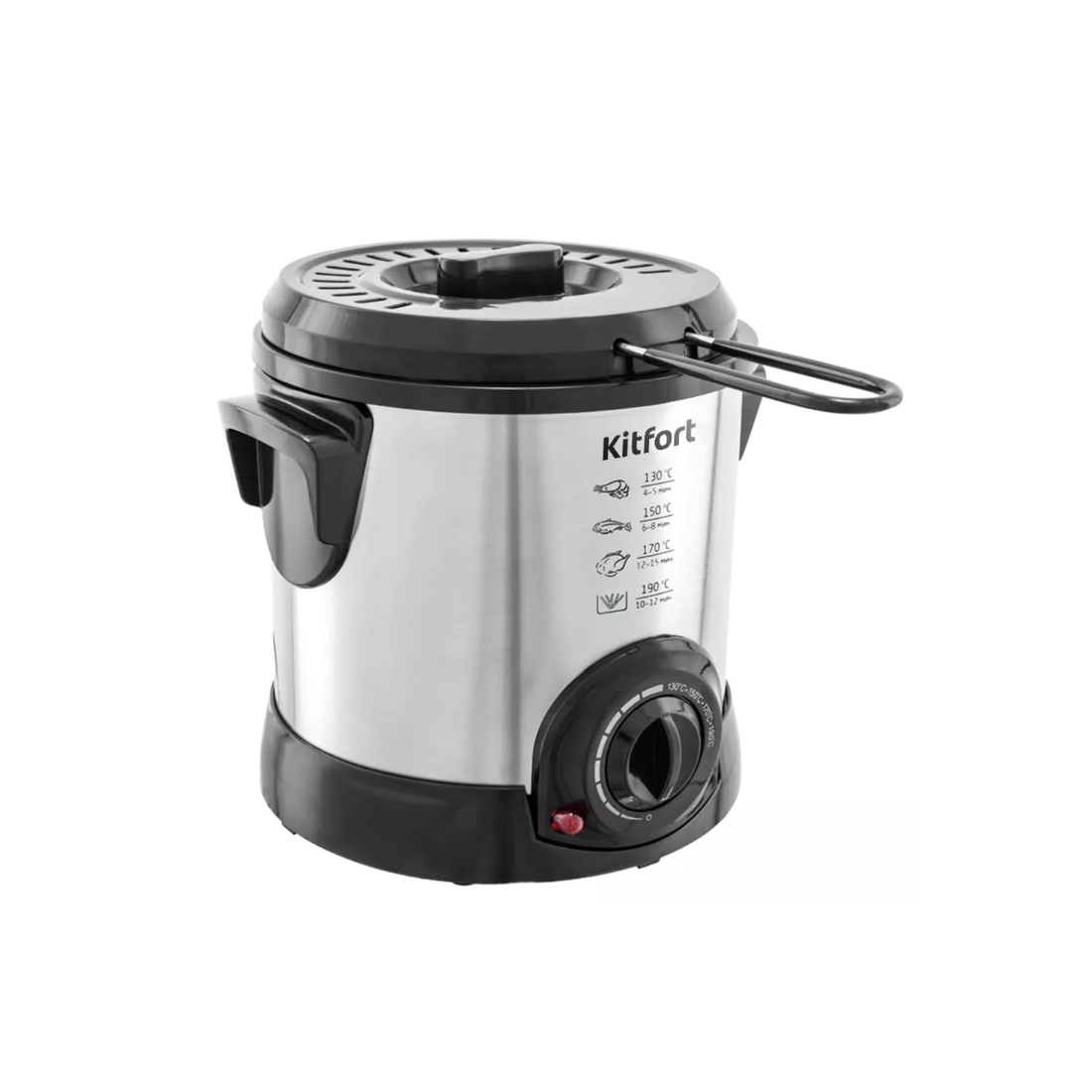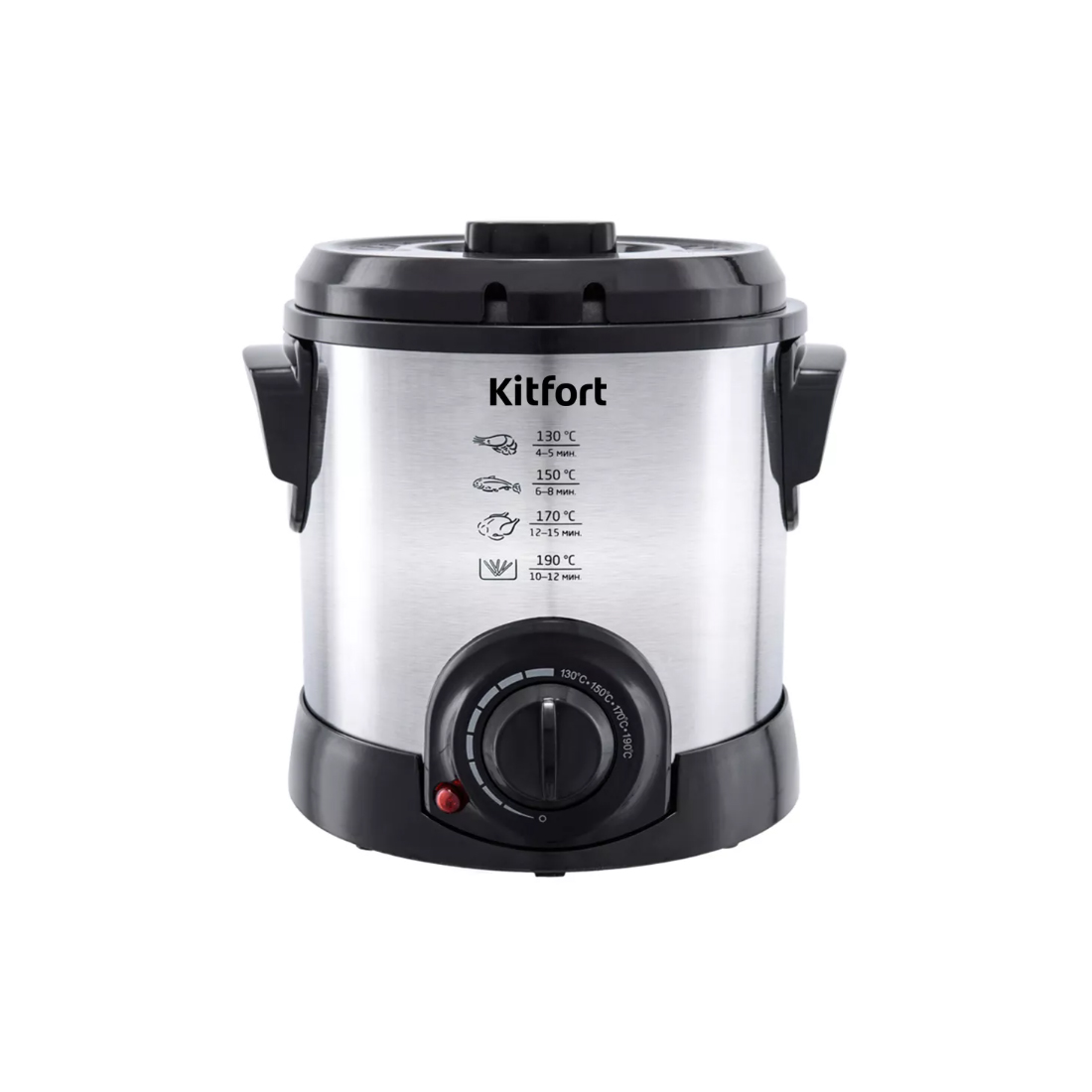 Фритюрница, Kitfort, КТ-2011, Механическое управление, Объем масла 1.5л, Диапозон температур 130-190 °C, Плавная регулировка температуры, Нержавеющая сталь, Черный, Стальной