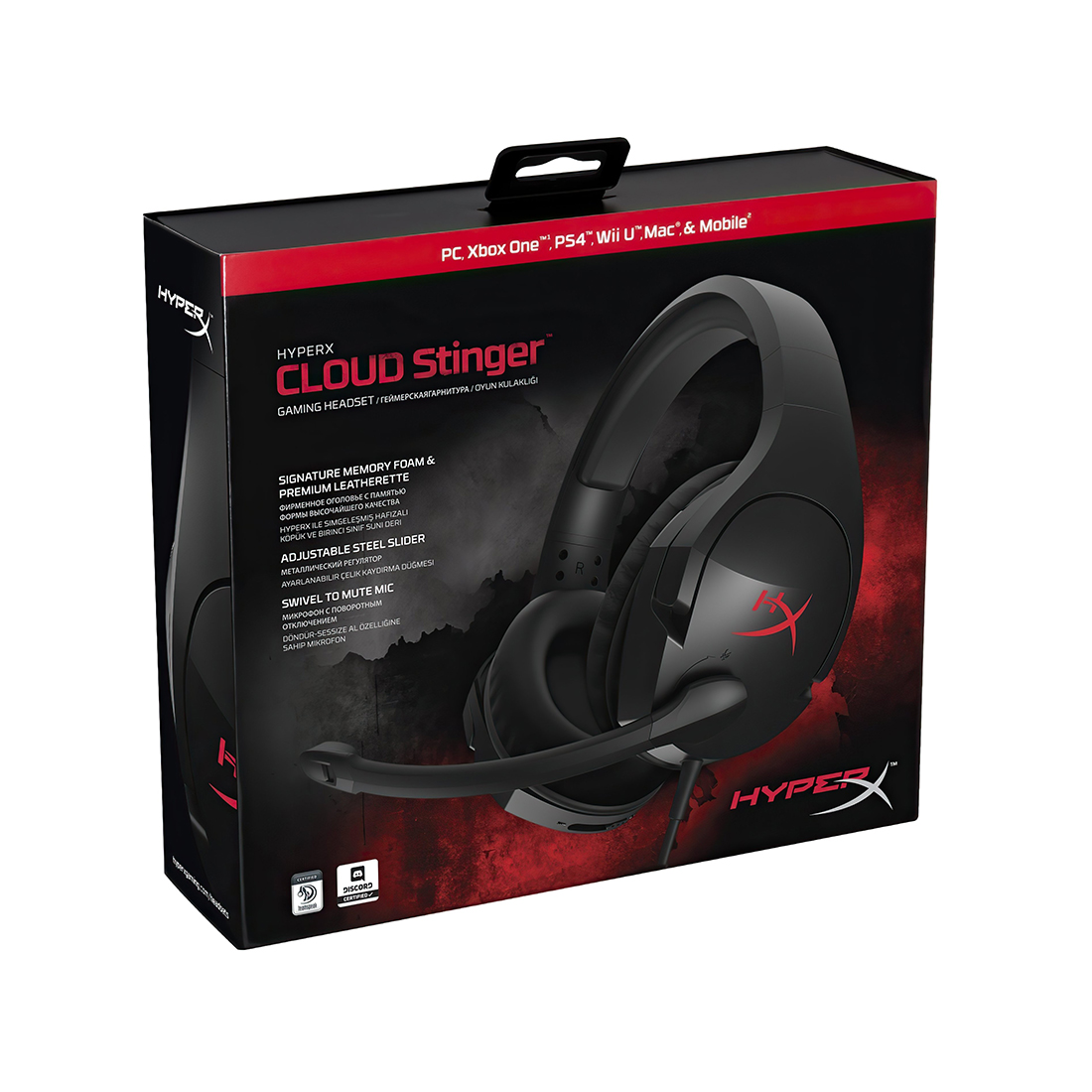 Гарнитура, HyperX, 4P5L7AX#ARL, HX-HSCS-BK/EE, Cloud Stinger, Микрофон поворотный гибкий, Динамики 50 мм, 30-500 мВт, 50-18000гц, 3.5 Mini Jack + удлинитель – 3,5 мм штекеры стерео и микрофона, Чёрный, Цветная коробка