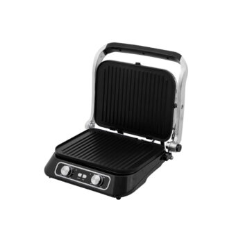 Гриль, Kitfort, КТ-1652, Таймер до 30 мин, Антипригарное покрытие, Температура нагрева 90-230°C, Автоматическое отключение, Открытие на 180°, Длина шнура 0.94м, Мощность 2100 Вт, Черный/стальной