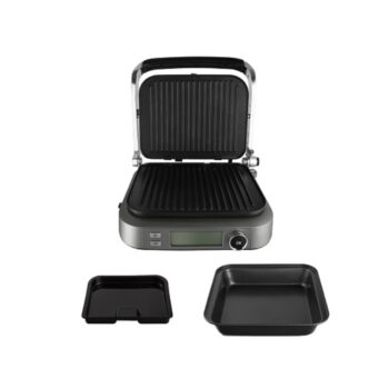 Гриль, Redmond, RGM-M816P, Электронное управление, 7 автоматических программ, Диапазон температур нагрева 70-230°С, Максимальный угол открытия крышки 180°, Антипригарное покрытие, Контактный гриль, Таймер, Автоматическое определение времени приготовления, Мощность 2100 Вт, Серебристый