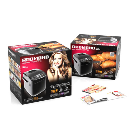 Хлебопечь, Redmond, RBM-1908, 450 Вт, Количество программ 19, Таймер, Смотровое окно, Размер выпечки 500/750гр, Выбор корочки, Черный