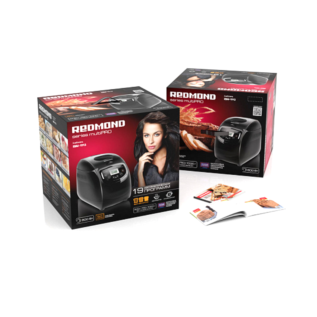 Хлебопечь, Redmond, RBM-1913,Мощность-600 Вт , Количество программ-19,Таймер-есть ,Смотровое окно-есть ,Напряжение-220-240 В, 50 Гц ,Материал корпуса-металл,пластик