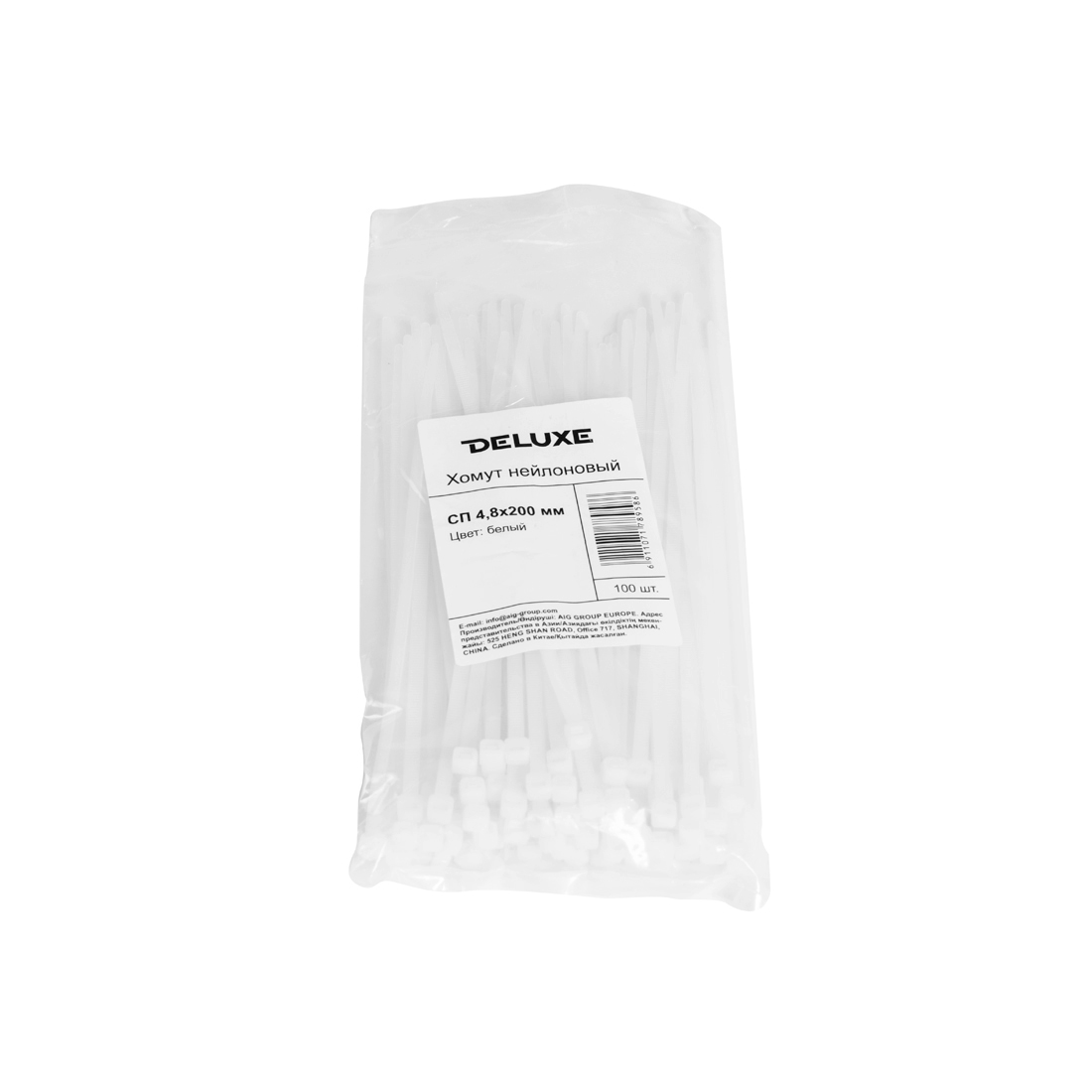 Хомут нейлоновый, Deluxe, СП 3.6*180 мм (Б), белый (100 штук в упаковке)