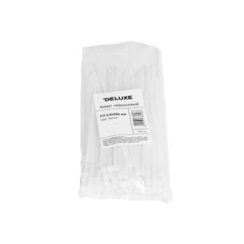 Хомут нейлоновый, Deluxe, СП 3.6*250 мм (Б), белый (100 штук в упаковке)
