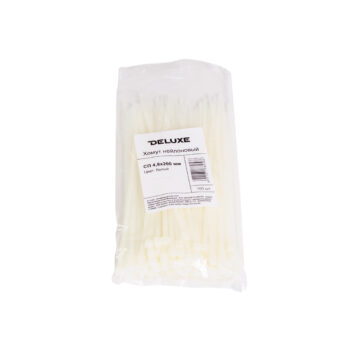 Хомут нейлоновый, Deluxe, СП 4.8*250 мм (Б), белый (100 штук в упаковке)