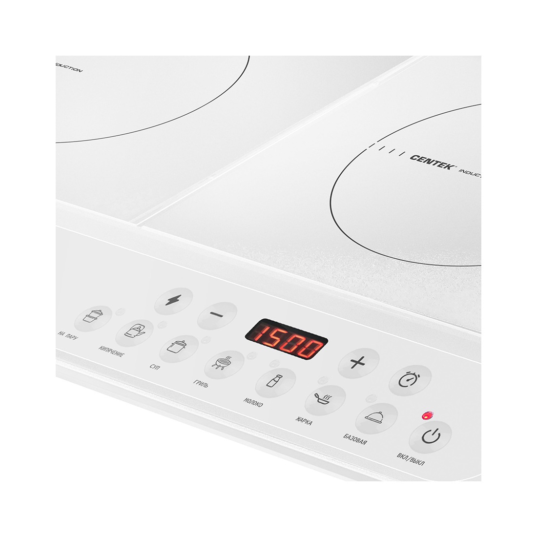 Индукционная плита, Centek, CT-1514, 3500Вт, 2 конфорки, 8 наст мощ-ти, 7 программ, Таймер, LED, Белый