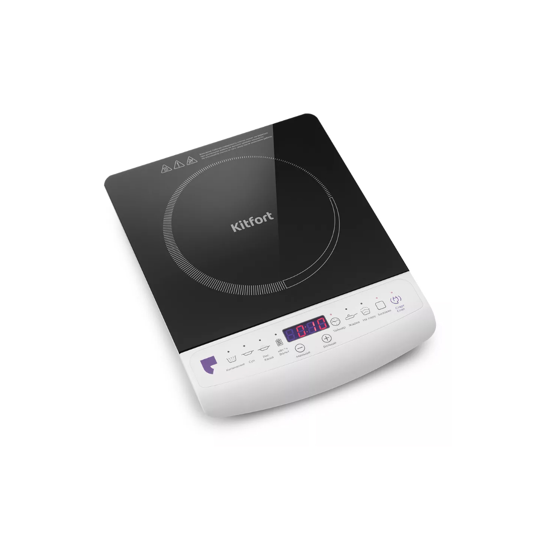 Индукционная плитка, Kitfort, КТ-101, Мощность 2000 Вт, Кнопочное управление, 1 конфорка, Диаметр конфорок 17 см, 6 программ, 10 режимов работы, Черный, Белый