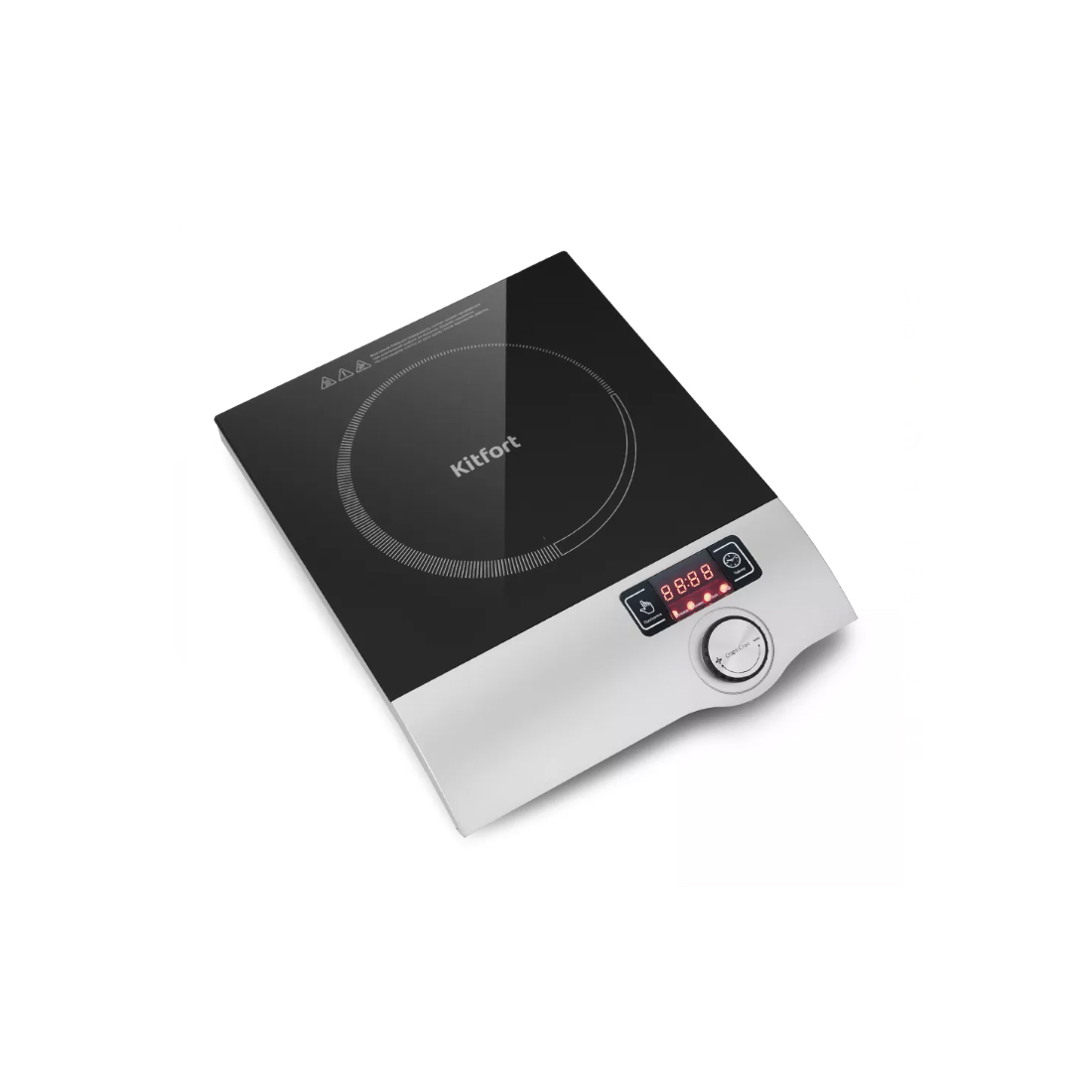 Индукционная плитка, Kitfort, КТ-108, Мощность 2000 Вт, Кнопочное управление + Регулятор, 1 конфорка, Диаметр конфорки 17 см, 4 программы, 10 режимов работы, Длина шнура 1.3м, Черный, Серебристый