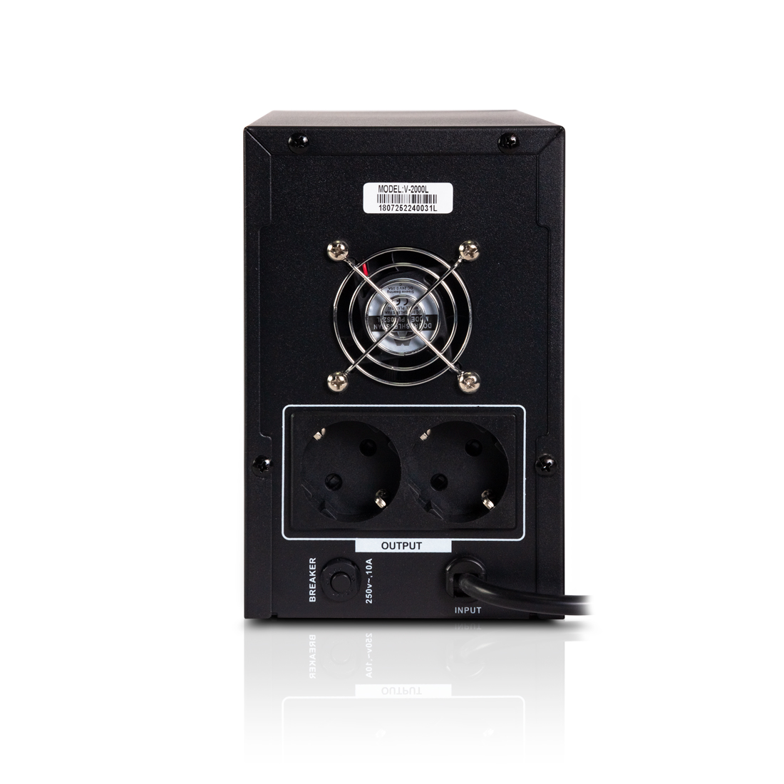 Источник бесперебойного питания, SVC, V-2000-L, Мощность 2000ВА/1200Вт, Диапазон работы AVR: 175-275В, Бат.: 12В/9Ач*2шт., 2 вых.: Shuko CEE7, Чёрный