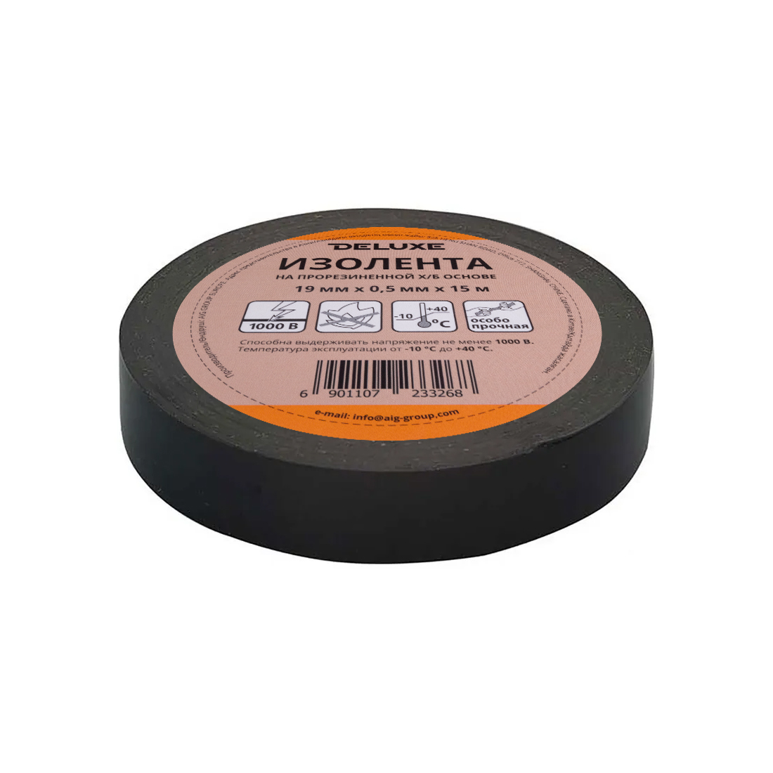 Изолента, Deluxe, ХБ 80 гр 19 мм x 0,5 мм длина 15 м чёрная